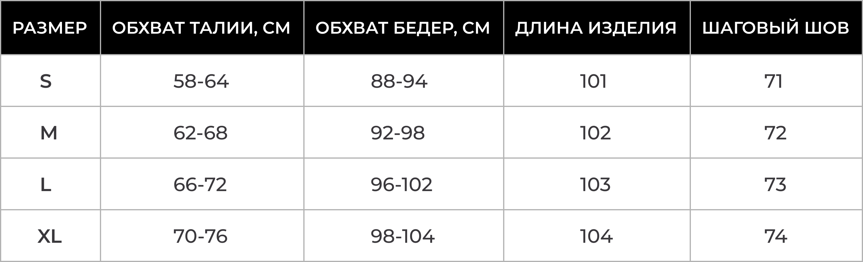 Гид по размерам брюки