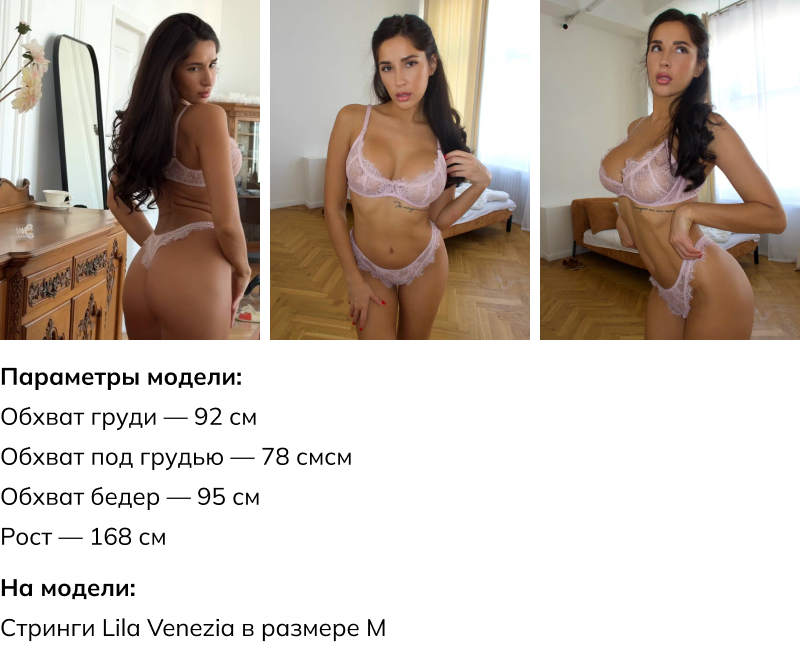 Стринги Lila Venezia выполнены из тонкого полупрозрачного кружева в мягком розовом оттенке. Вдохновлённые итальянской классикой, они сочетают утончённость линий и продуманную посадку. Крой подчёркивает линию бёдер, а эластичный пояс и края с деликатной отделкой создают воздушную форму.