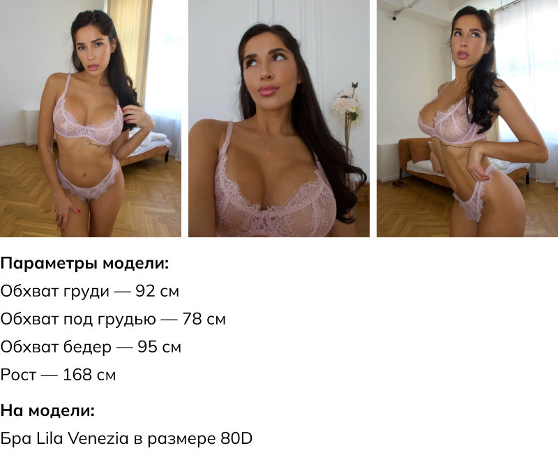 Бра Lila Venezia из тонкого кружева на косточках. Открытая чашка и мягкая резинка по верхнему краю обеспечивают поддержку и комфорт без жесткости. Модель подчёркивает естественную форму груди и подходит для ежедневной носки.